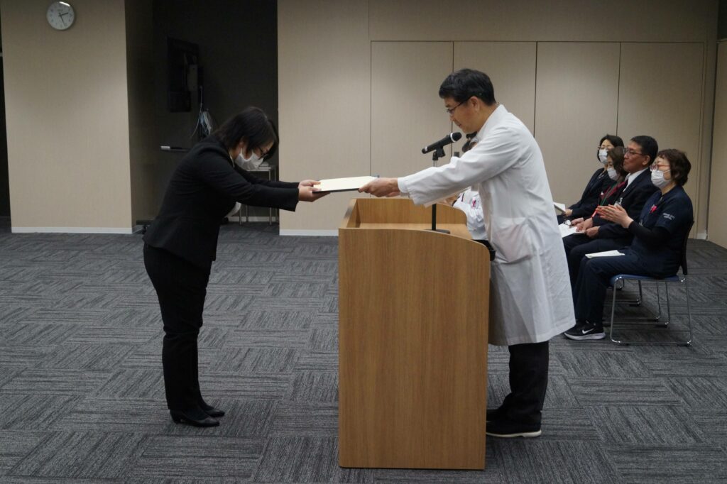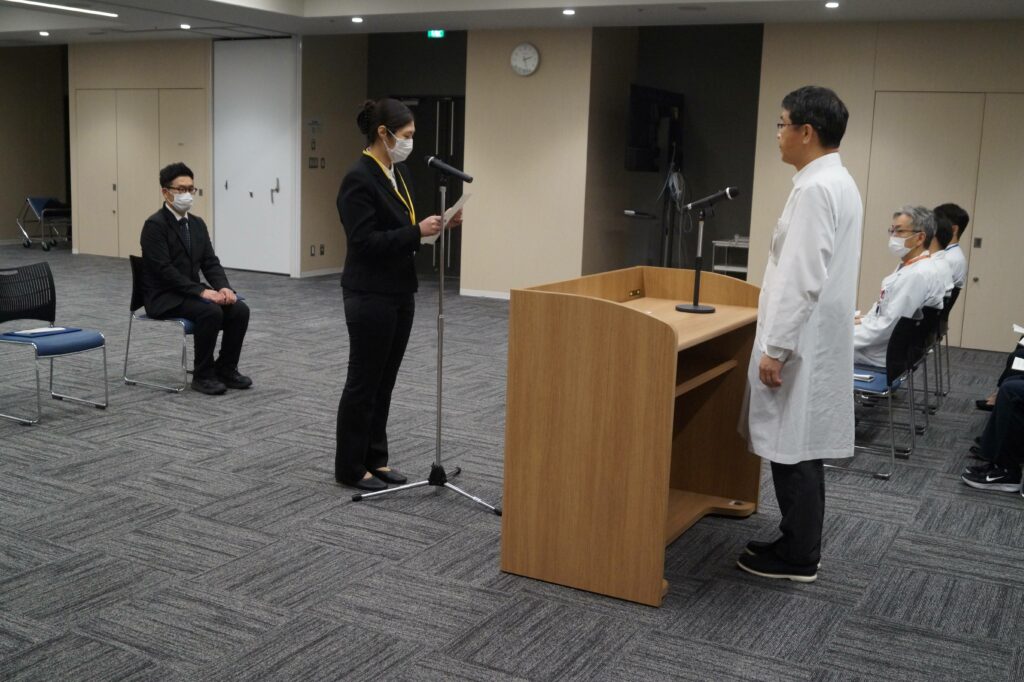 式典では、谷口院長より特定行為研修修了証が交付され、研修生のこれからの活躍と期待の言葉が述べられました。また、研修生の代表から研修での学びや今後への決意が語られ、式典は厳かな雰囲気で終了しました。