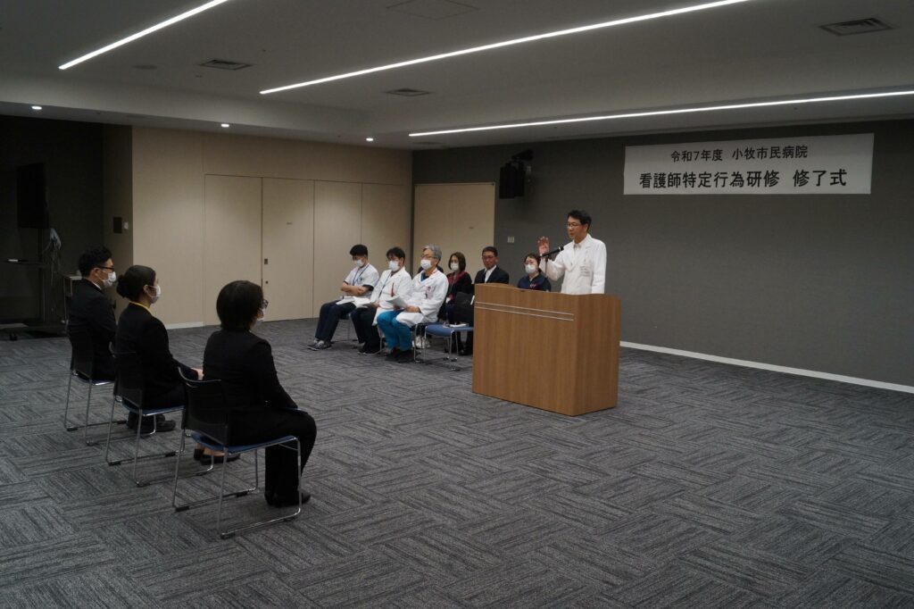 令和8年3月18日(水)午後2時より、小牧市民病院講堂で令和7年度生(5回生)の看護師特定行為研修修了式を行いました。